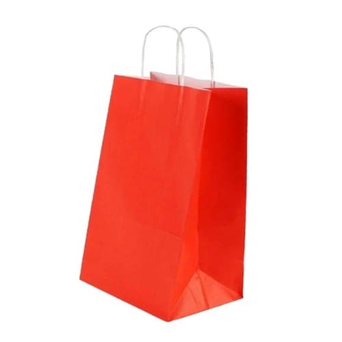 Burgu Saplı Kırmızı Kağıt Çanta 25x31x12 cm