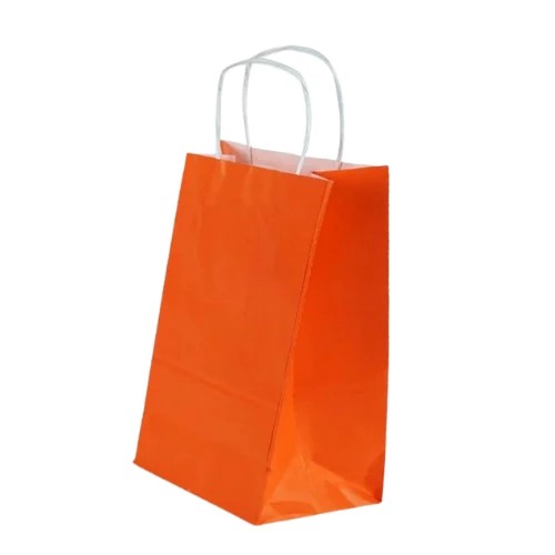 Burgu Saplı Turuncu Kağıt Çanta 18x24x9 cm