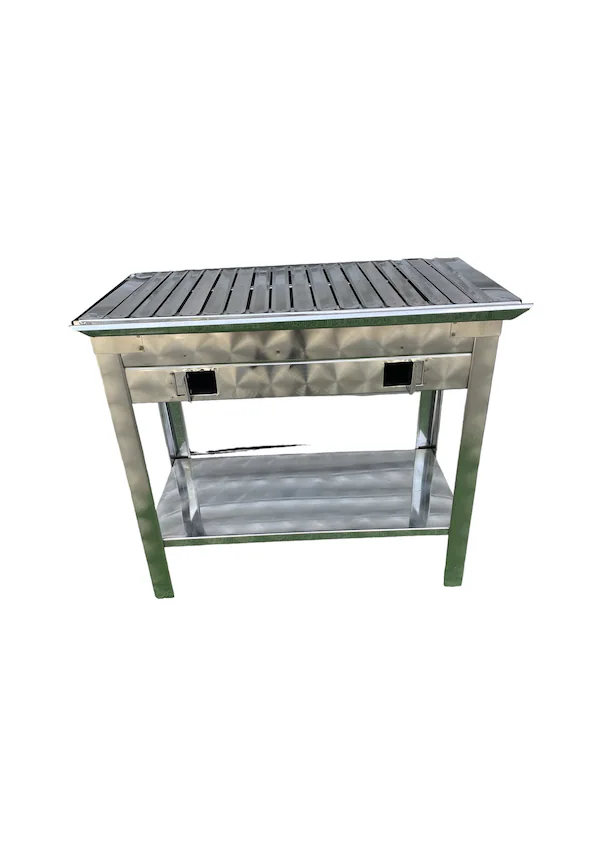 Ürünün Kullanılmadan önce Yağlanması Önerilmektedir, Kullanımı Sonrasında Gerekli Temizliği sonrasında İyice Kurulanması Uzun Ömürlü Kullanım için Tavsiyemizdir Köfteci, Kebapçı Mangalları için Oluklu Üst panel ölçüsü olan mangallar için üst platform Izgara üst panelinin imalatı paslanmaz krom çelik saçla yapılmış olup kanallı tip mangal ızgarası modelidir