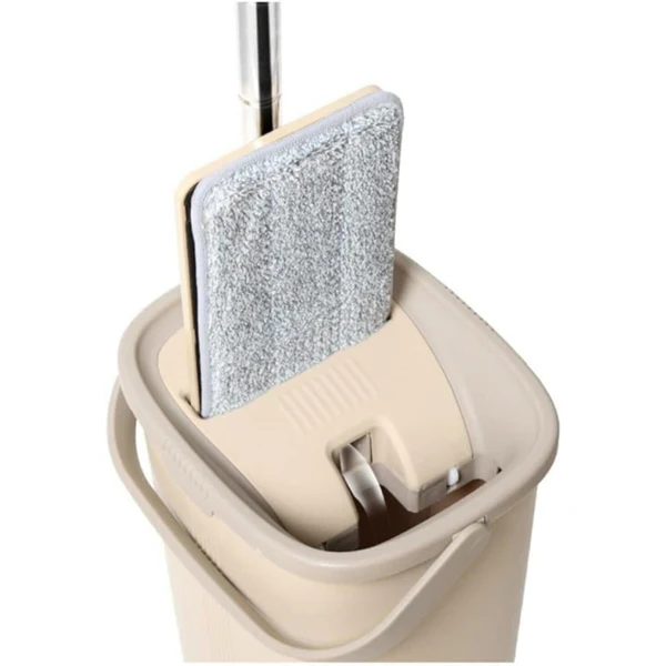 Setin içerisinde yer alan tablet mop, ince yapısı ve 180° hareket kabiliyeti ile köşe ve kenar detaylarında bile etkili temizlik sağlar. Mikrofiber mop başlığı yüksek emicilik sunar; suyu ve kiri tek seferde toplar, iz ve tüy bırakmaz. Ayrıca özel sıkma mekanizmalı kova sistemi sayesinde mop başlığına elle temas etmeden suyu kolayca sıkabilir, temizliği daha hijyenik hale getirebilirsiniz.